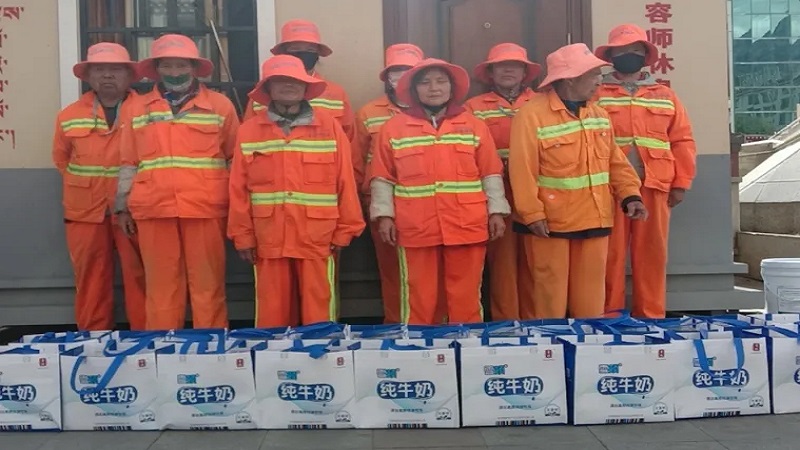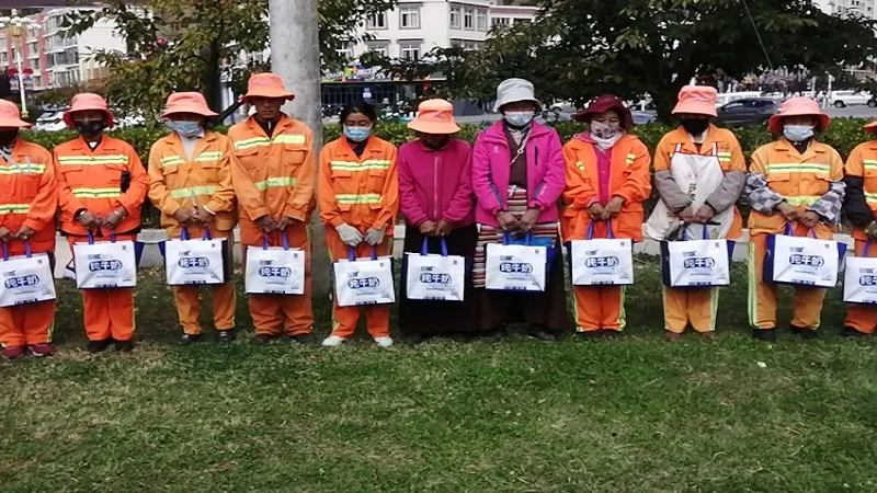 為感謝他們多年來(lái)的辛勤付出,國(guó)策環(huán)保林芝分公司相關(guān)人員向作業(yè)在一線(xiàn)的環(huán)衛(wèi)工人以每人80元的標(biāo)準(zhǔn),發(fā)放了當(dāng)?shù)靥禺a(chǎn)雪頓純牛奶、嘎瑪雞蛋、鹽等慰問(wèn)品,共計(jì)274份。