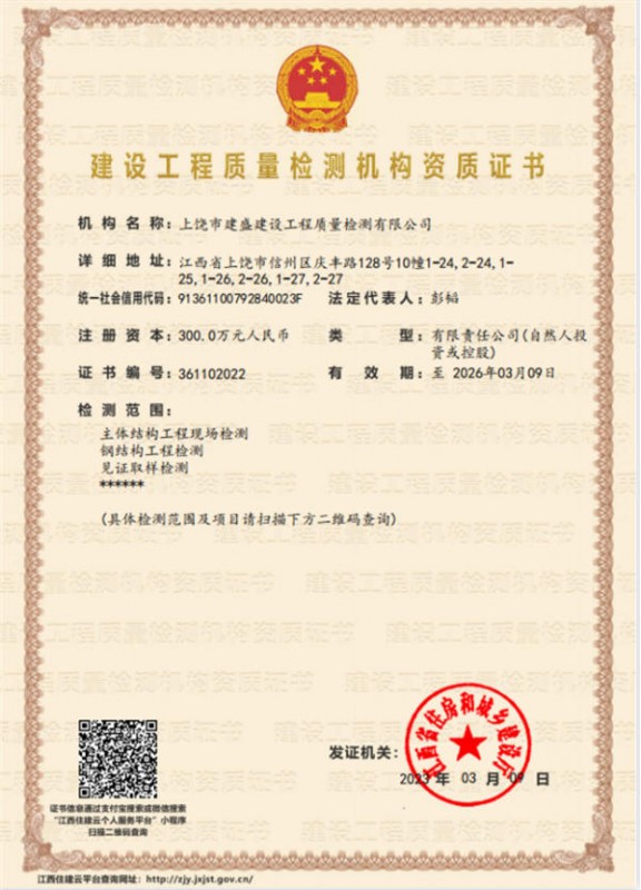 上饒市建盛建設(shè)工程質(zhì)量檢測有限公司